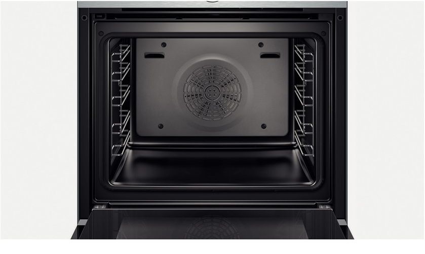 Духовой шкаф Bosch HBG634BS1 оснащен сенсорной панелью управления, совмещённая с переключателем Control Ring, отвечает самым последним техническим разработкам. На ней отображаются режимы нагрева, функции подсветки, времени, таймера, контроля температуры и блокировки от детей. Индикация значков подскажет вам, какой из режимов используется в данный момент.