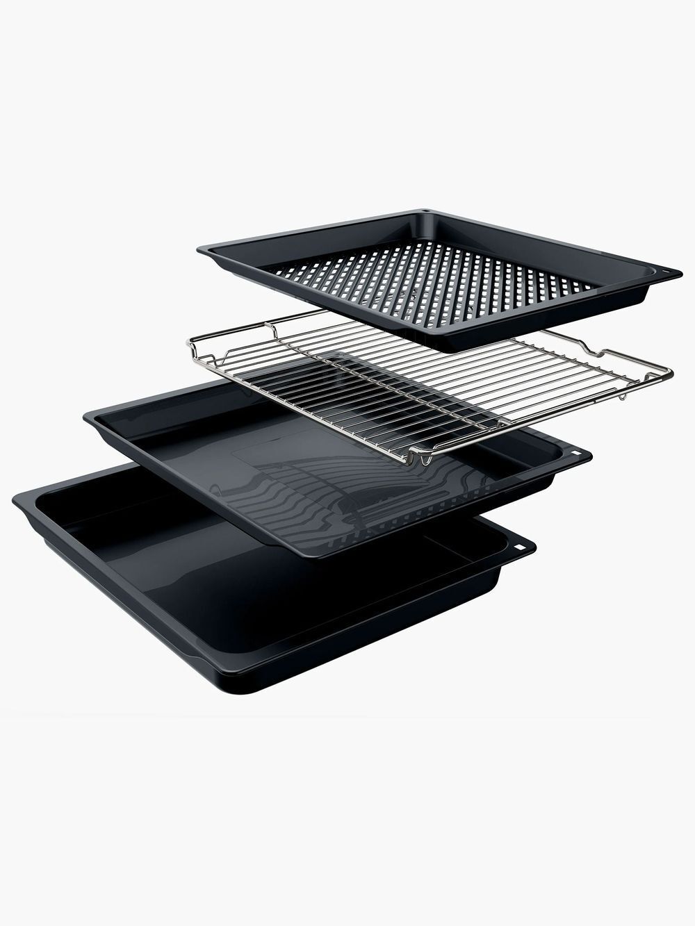 духовой шкаф - 1 шт, решетка Combi - 1 шт, универсальный противень - 1 шт, противень для выпечки - 1 шт, противень Air Fry - 1 шт, документация