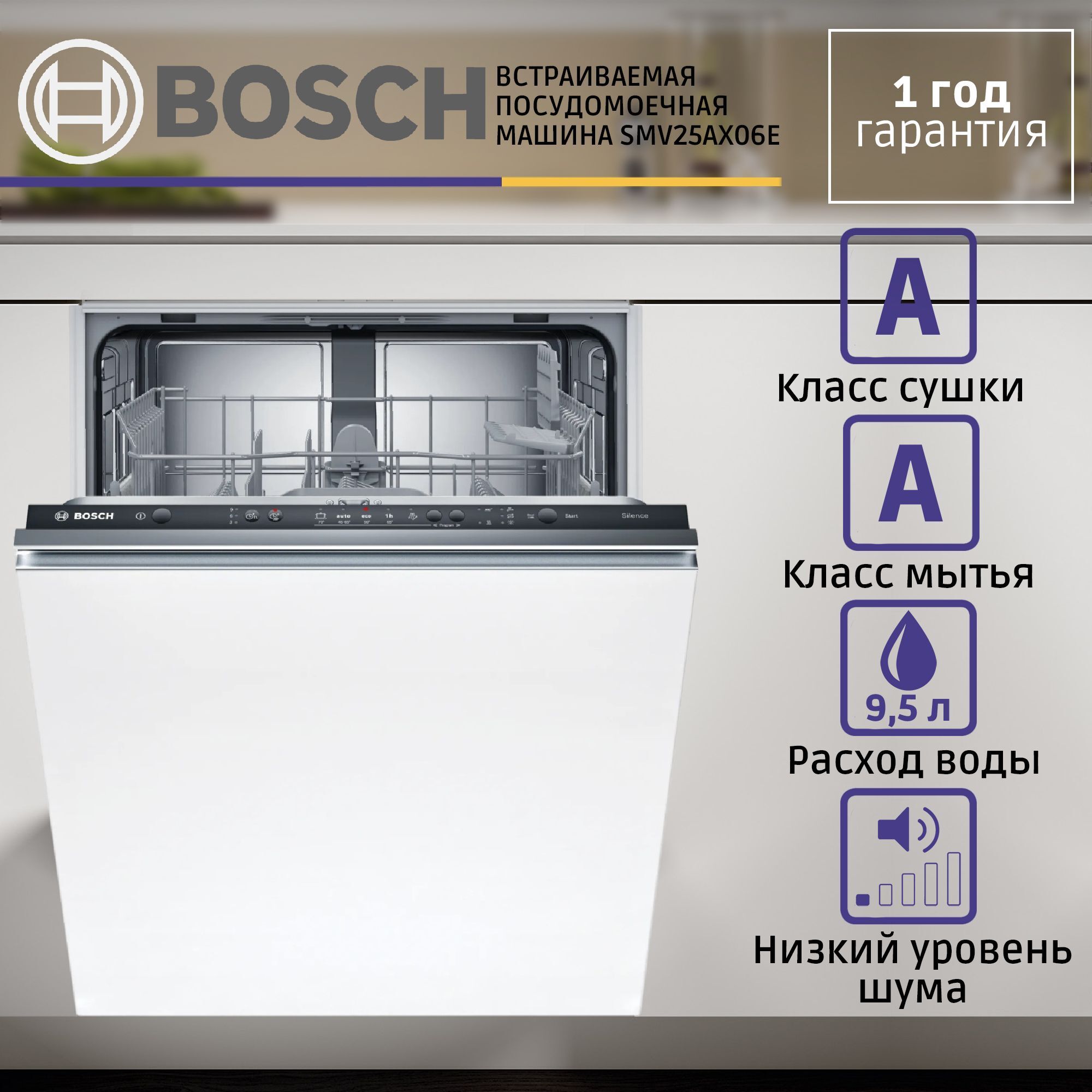 Встраиваемая посудомоечная машина BOSCH SMV25AX06E - это полнофункциональное устройство, которое станет незаменимым помощником на вашей кухне.